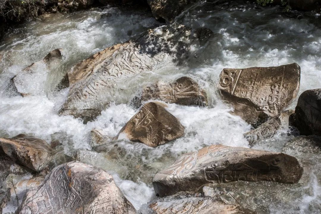 勒巴沟藏语意为“美丽沟”,位于通天河畔。沿着一条山径来到这里,一边是通天河的喧嚣和壮阔,而另一边是勒巴沟岩画的静谧、神圣。每走几步就能看到精美的岩画,主要以佛像、菩萨、香客、瑞兽等为主。溪水中和两侧还有数量众多的刻着经文的玛尼石,从沟口唐末释迦像到现今打制的玛尼石,可以看到整个藏族宗教石刻的历史。