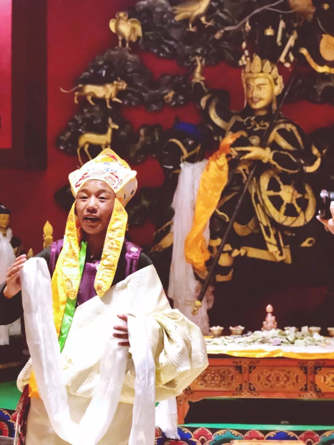 拉宗宫是避世高人的清修之所,是此行文化之旅里最“高冷”的一个目的地。沿着一条崎岖的盘山小路行驶数十分钟,抬头看见一座金顶的“小宫殿”魏然坐立在悬崖之巅,上到山顶再沿着峭壁徒步下到“行宫”,往里走还有蜿蜒曲折、滴水成冰的溶洞,洞内供奉着莲花生大师的佛像,想必选择在此清修的世外高人,都是有大智慧的人,他们冷眼看淡世间的一切,全心全意追求着心灵的超越。