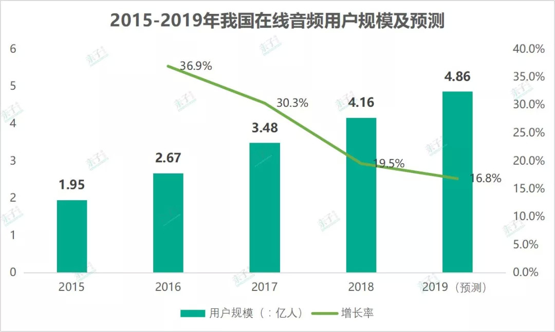 根据艾媒咨询公开的数据显示,我国移动音频用户规模在2018年达2.9亿人,并且有望在2019年超过3亿,接近整体移动互联网人群的三分之一。