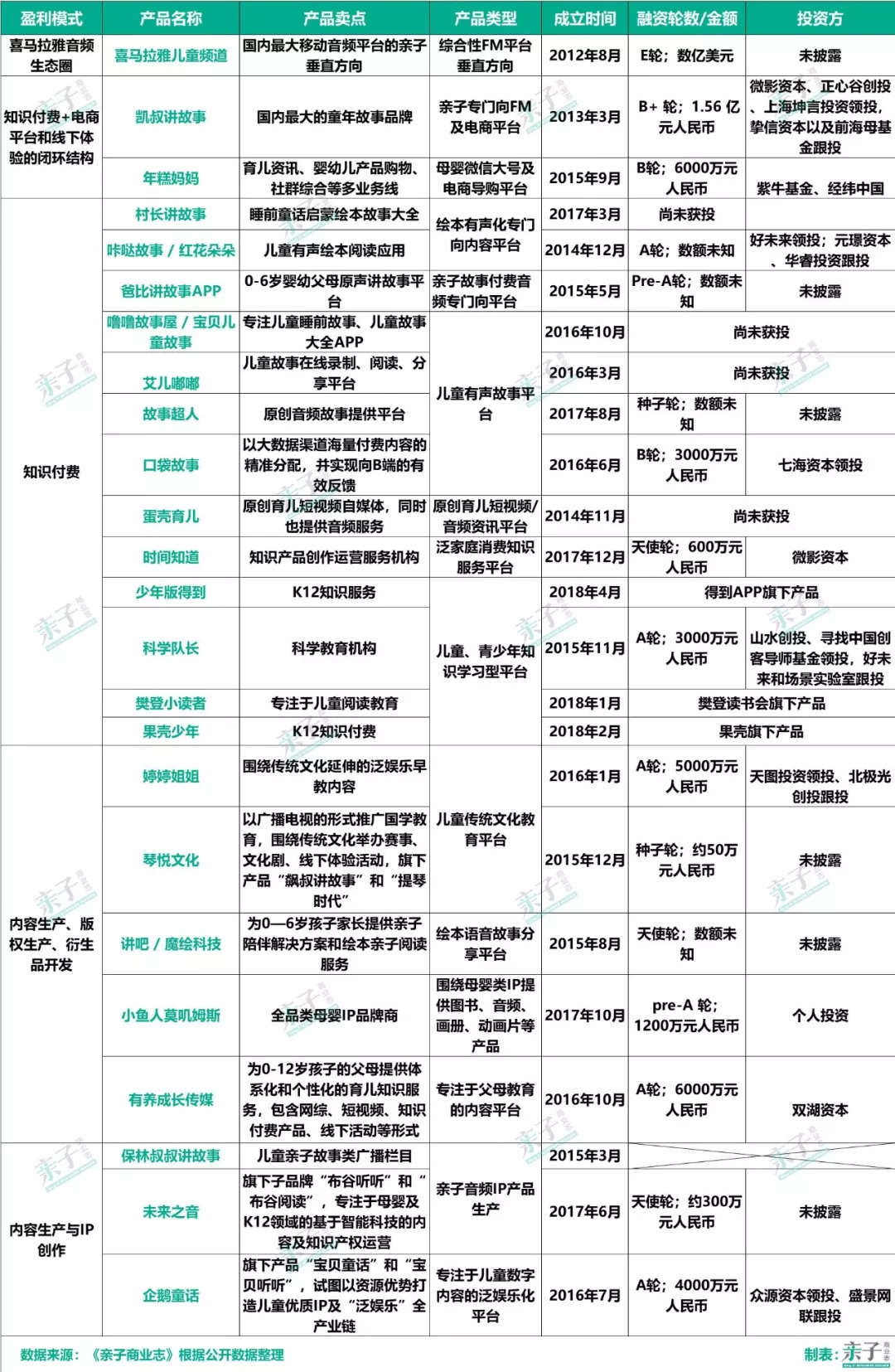2.5 亲子音频市场传统及新兴玩家在资本市场的估值水平将日渐趋同;资本更看重内容利用和盈利的创新空间