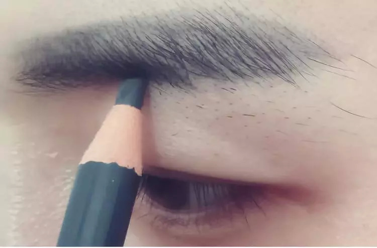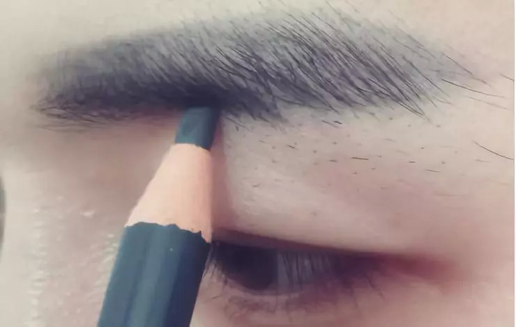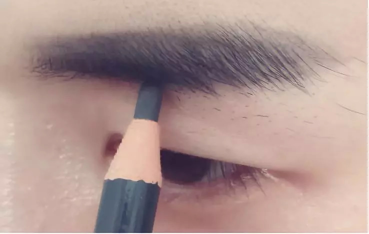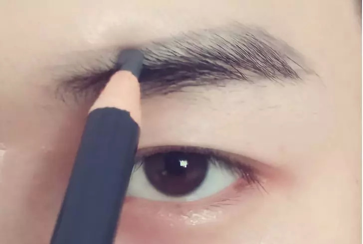 这里小编的朋友没有眉卡所以直接用眉笔勾勒形状了,刚开始画眉或有眉卡的男士可以使用眉卡。