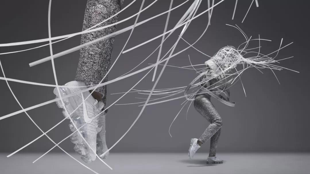 从2017秋冬系列开始,她通过空间布置再给“情绪”加码——各种型号的银色半透明手套悬挂在屋顶,就像某种神秘的仪式。后来在2018春夏系列中,秀场内摆放了许多透明装置,隐喻水和海洋的关系。