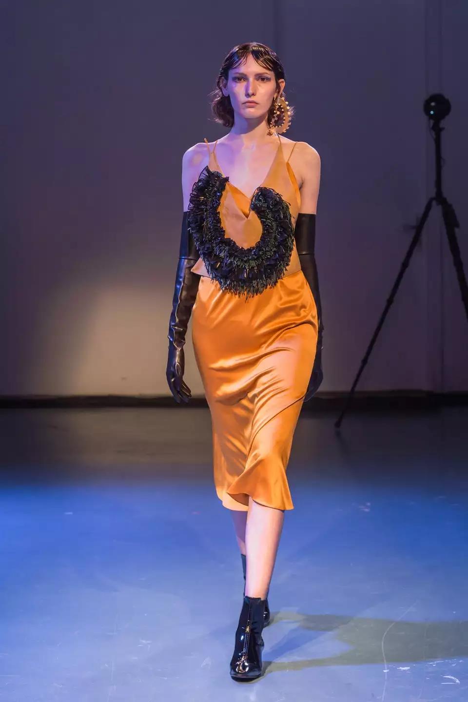 2018秋冬系列的秀场邀请了法国音乐家Yann Gourdon在现场演奏,为了体现“叛逆土壤”的主题,她用看似坚硬的圆形纺织品作为泥土和人体之间关系的象征,并运用软麂皮、金属涂层压褶和蜡面棉绳等材质让感性的层次更为丰富。