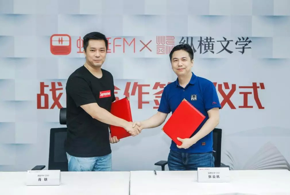 市场激增的同时,是各大平台的跑步入场。今天下午(8月9日),蜻蜓FM与纵横文学宣布达成文字及音频版权互授、联合打造文学IP等战略合作计划,整合资源助力有声内容的创作、传播和变现,共同开拓有声阅读市场。