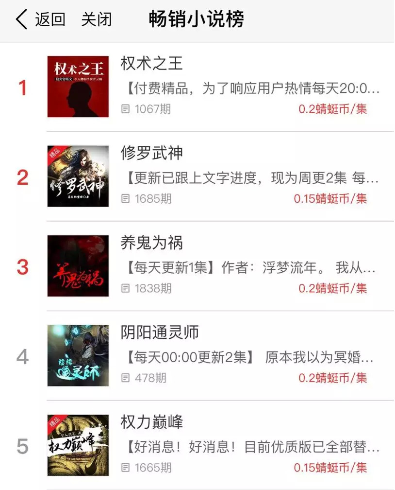 早年的有声书,如经典的《盗墓笔记》、《茅山后裔》,都是在小说作品完结、并且内容全部录完的情况下再推向用户。虽然可以一口气听完,但却没有追更的新鲜刺激感。