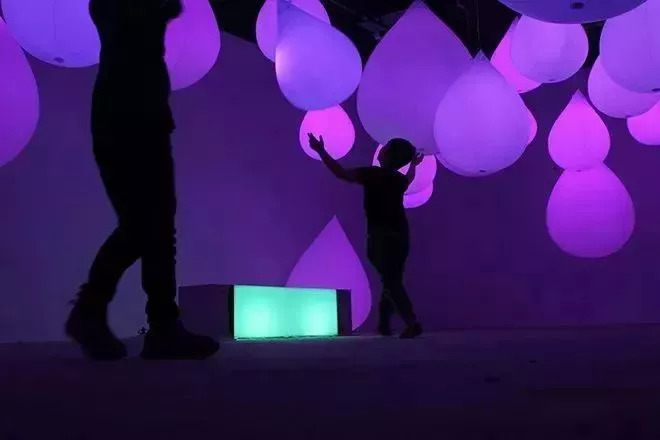 “大雨,声音和发光体”是SeeekLab为鼓励自闭症儿童接触世界、利用声光技术创作出的展览。自闭症儿童常常被描述为“星星的孩子”,像天上的星星一样活在自己的世界里,这个作品就是用互动式的声音和发光体鼓励这些孩子们走出自己的世界。