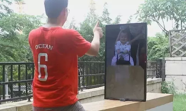 通过装置对重量的感应,跷跷板一升一降,刘海滨父子分别在跷跷板另一端的屏幕中望着彼此,这一幕传递的不仅是画面,还有思念。“这是一种真实的感觉,是一种父爱的连接。”