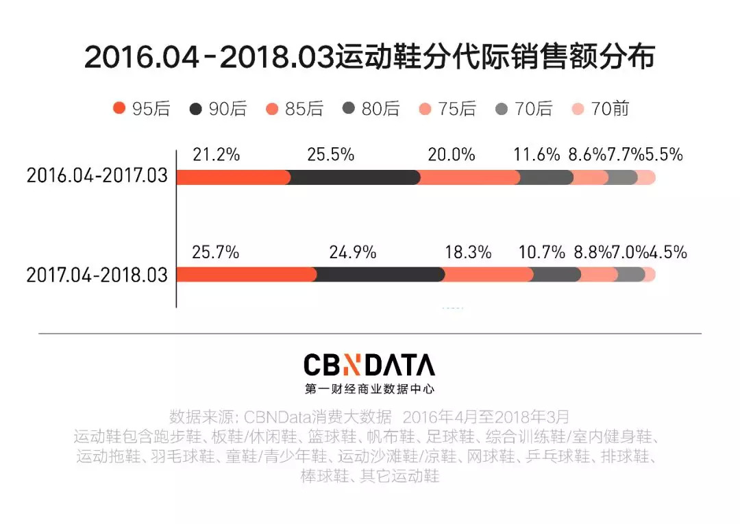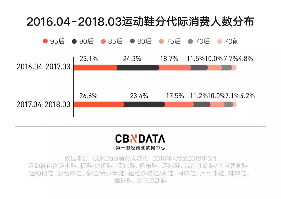 近日,第一财经商业数据中心(CBNData)发布《生命,在于运动-线上运动鞋相关消费系列研究》(以下简称《研究》)。基于CBNData消费大数据,以运动鞋相关品类为研究对象,主要通过洞察 2016年4月至2018年3月线上各年龄段消费人群对运动鞋的购买偏好特征以及消费行为,还原中国线上运动鞋的消费现状。
