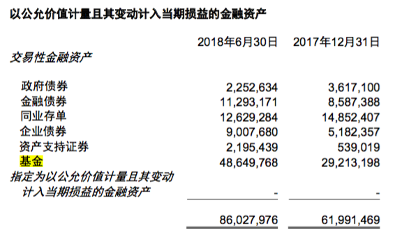 值得注意的是,通过半年报数据可以发现,2018上半年南京银行加大了对基金的投入,较上期末增幅166.53%。