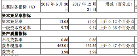 报告期内,该行资产总额为11936.31亿元,较期初增加524.68亿元,增幅4.60%;基本每股收益0.70元,增幅16.67%;存款总额7612.68亿元,增加386.45亿元,增幅5.35%;贷款总额为4361.19亿元,增幅12.13%;不良率连续第5个季度维持在0.86%,低于行业均值1.75%,拨备覆盖率和拨贷比在463.01%和3.98%的高位水平。