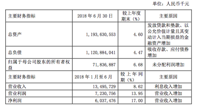 8月9日晚间,南京银行(601009.SH)在A股上市银行中首发2018年半年报。上半年,南京银行实现营收134.96亿元,同比增长8.62%;实现归属母公司股东的净利润59.78亿元,同比增长17.11%。