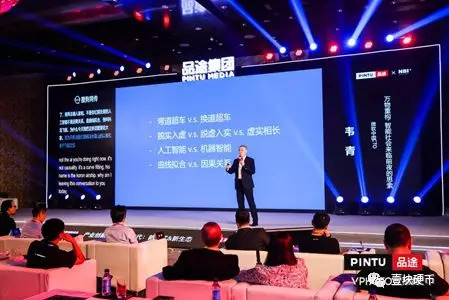 会场中,大屏幕上显示,微软中国CTO韦青发表了主题为《万物重构-智能社会来临前夜的思索》的演讲。