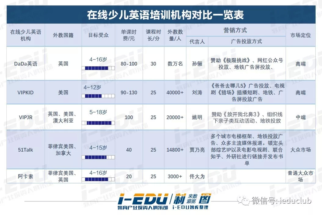 作为在线品牌,能扩大知名度,打开市场最重要的手段就是请知名代言人,这一方面每家都下足了功夫,从影视明星到体育巨星,没有谁在这个环节落下。同时所有代言人的家长身份也符合产品定位。从广告投放来看,多家机构都是采用线上投放+线下铺设的架构,方式也是多种多样。