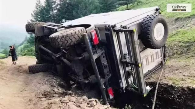 翻车的原因想必一看就能了然——重心实在太高了。笔者曾在原先通过“康恒沟”的时候留意过车内坡度计上的显示,坡度计上的侧倾表底为三十度,实际通过时的指针已经超过表底,估算有接近四十度的侧倾。这辆越野房车的极限侧倾角度我们虽然不得而知,但这就牵扯到另外一个问题:别人没翻的地方,你说不定就会翻。