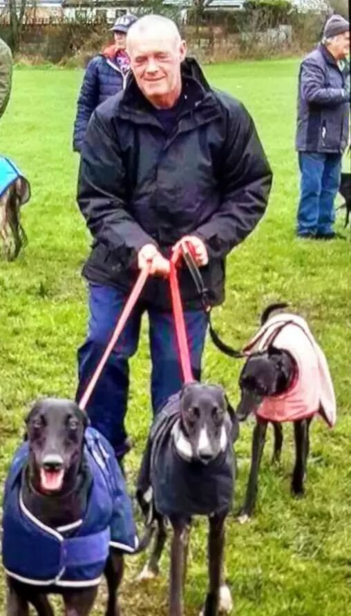 英国一名51岁的退伍军人David Money养有7条小灵狗。