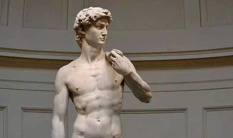 被收藏于意大利佛罗伦萨美术学院米开朗基罗的大理石雕塑大卫,体态健美、神情坚定、肌肉饱满、富有生命力,是西方美术史上最值得夸耀的雕像之一,代表了人性的觉醒具有跨时代的意义。