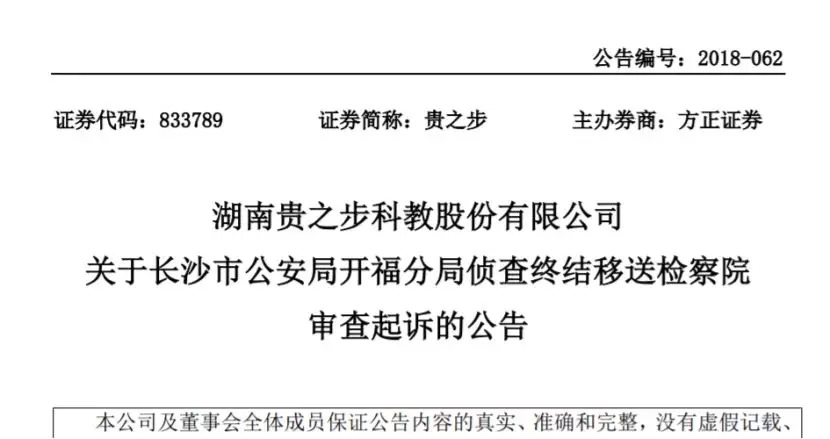 当地时间8月7日,贵之步披露最新公告表示,公司实际控制人郑靖已经收到长沙市公安局开福分局出具的告知书,由于犯罪事实清楚,证据确实充分,现该案侦查终结,郑靖被移送检察院审查起诉。