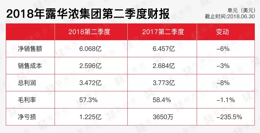 整体来看,露华浓集团第二季度财报还是延续了第一季度的颓势,各项数据都有所下滑。
