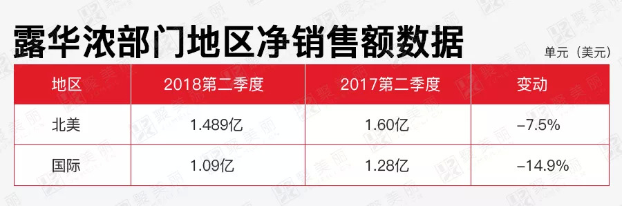 在中国市场的“不走心”并没有让露华浓在北美市场收获很好的业绩。露华浓第二季度在北美地区的净销售额为1.489亿美元(约合人民币11.67亿),同比下降7.5%,集团认为主要原因是露华浓彩妆、染发产品在美国零售渠道销售遇冷。