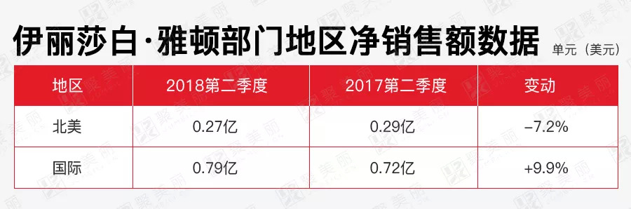 在北美地区销售额为2700万美元(约合人民币1亿),较去年同期下降了7.2%。净销售额下降的主要原因是北美的一些雅顿专营店关闭,具体关店数量财报并未披露。