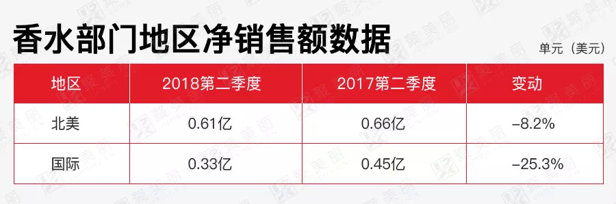 其中北美市场的净销售额为6120万美元,同比下降了8.2%;在国际市场上,香水部门净销售额为3360万美元,同比下降了25.3%。