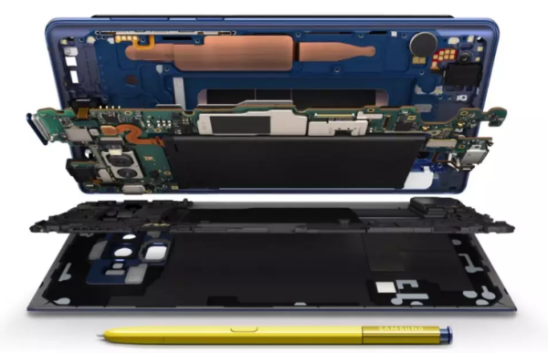 7)机身散热上,Galaxy Note 9在内部使用了水冷+碳纤维技术,防止处理器过热和系统的运行稳定。三星官方的数据称,升级后的冷却系统的吸热能力提高了3倍,导热系数提高了3.5倍,对于大屏重度游戏应该会提供不错高帧率和流畅度的体验。