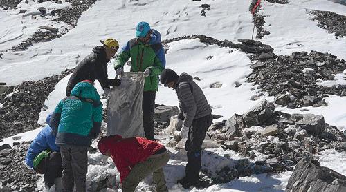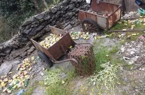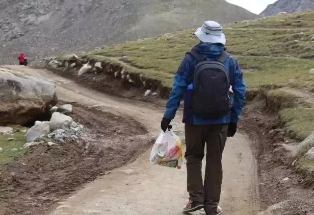 从山上背下来一吨多垃圾。