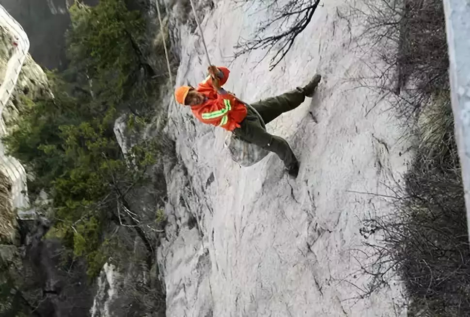 这不过是崖壁清洁工的日常。