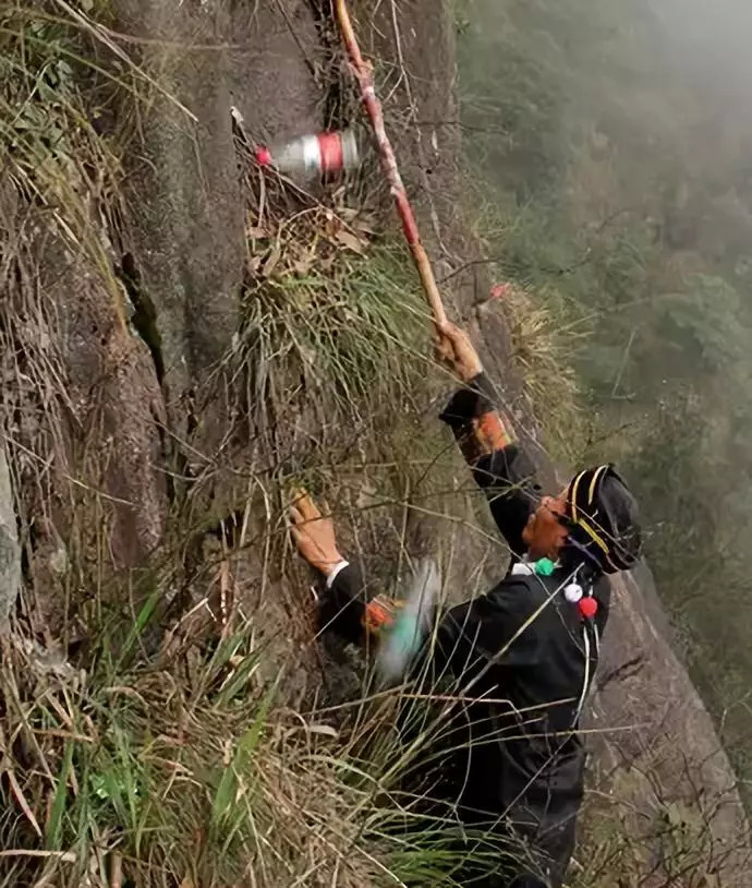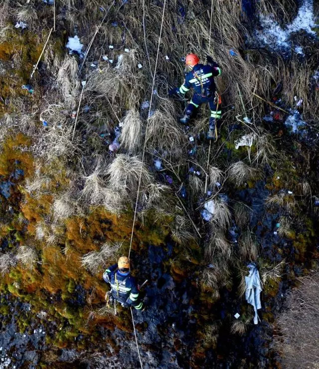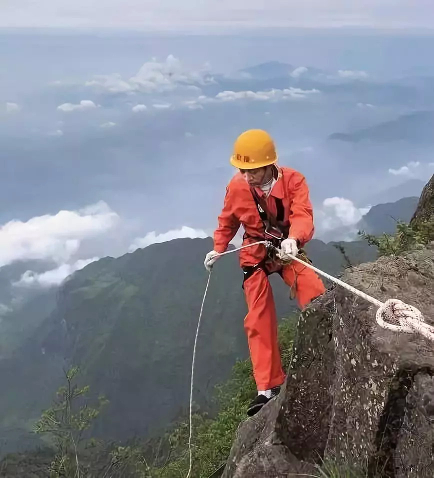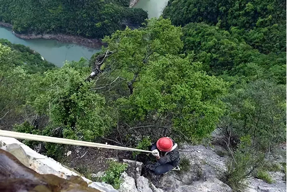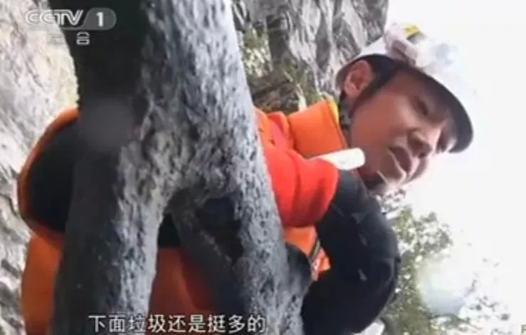 悬崖峭壁上清理垃圾,