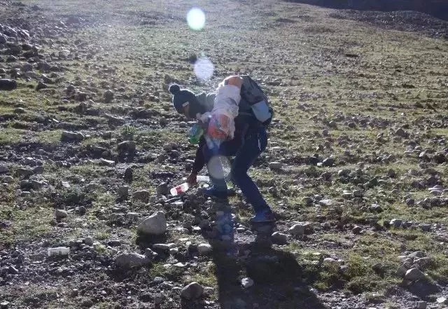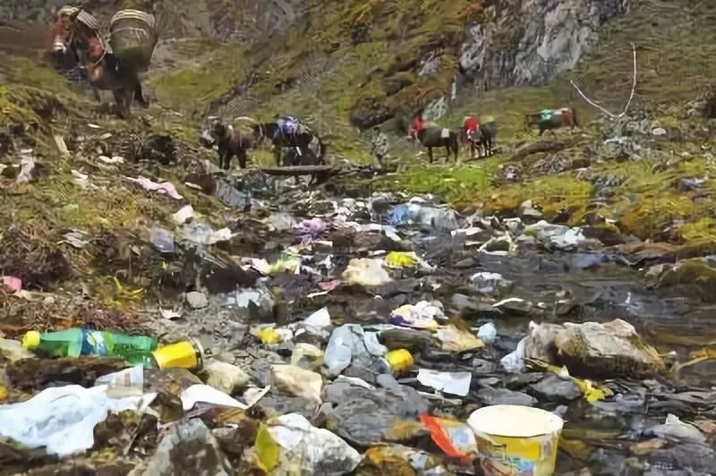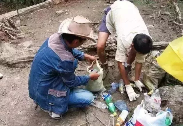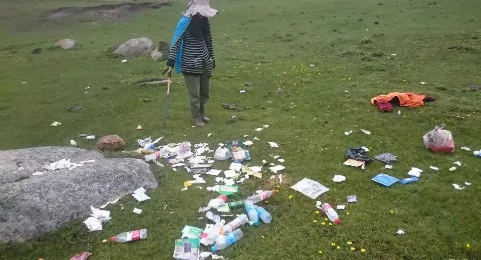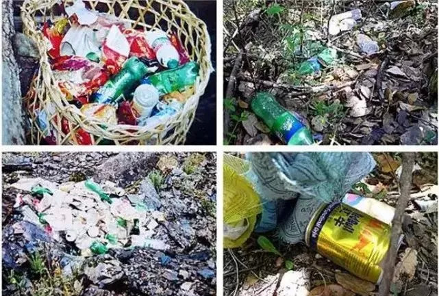 徒步后留下来的成堆垃圾。