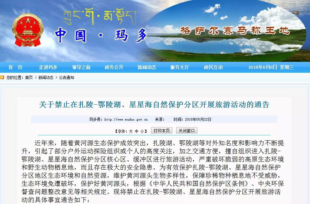 青海省玛多县发布通告: