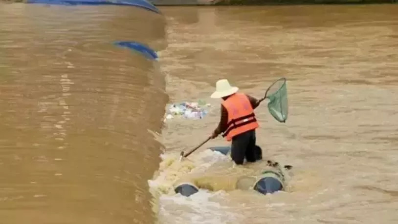 因为水流湍急被困在了河里,