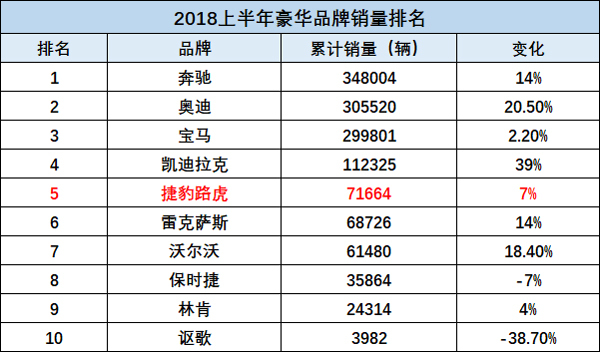 今年上半年,在各细分市场都不够强势的表现让捷豹路虎在豪华品牌排名中再次痛失二线阵营头名之位,被美国豪华汽车品牌凯迪拉克再次反超。