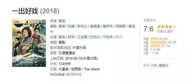 在暑期档电影普遍评分不高的情况下,《一出好戏》作为一部导演处女作,愣是开出7.6分的高端局。