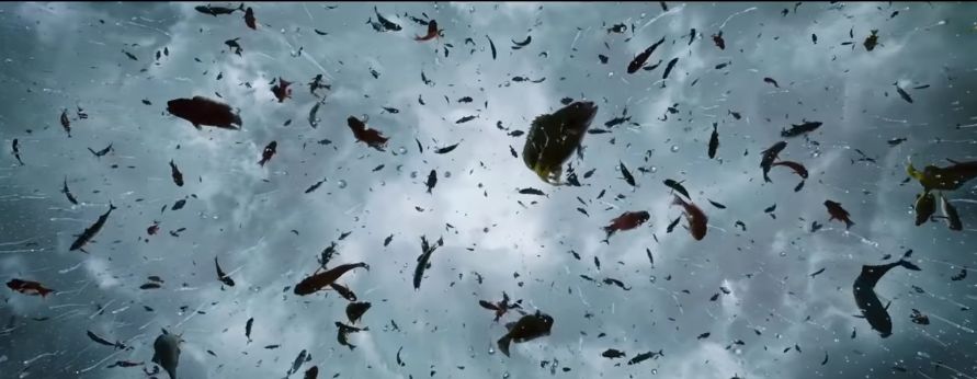 就在黄渤的彩票超过兑奖日期的那天(没错他中了6000万但我就是不说等你自己去看),突然天降大雨,数以千计的鱼从天而降,把他俩砸得抱头鼠窜。