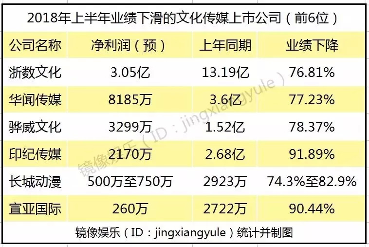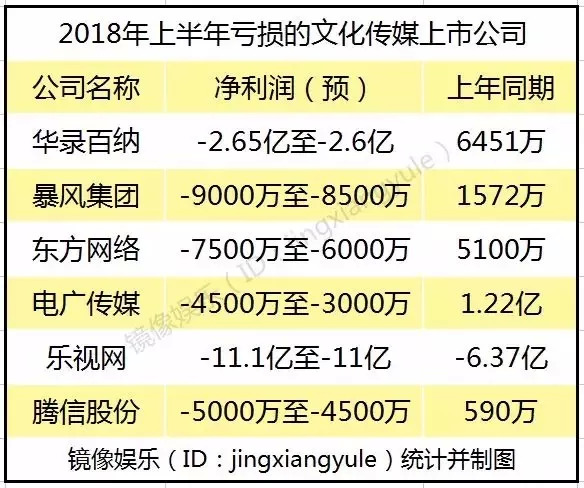 近日,文化传媒上市公司相继发布了2018年上半年业绩预告/半年报,据不完全统计,截至发稿前,有6家公司在上半年净利润处于亏损状态。