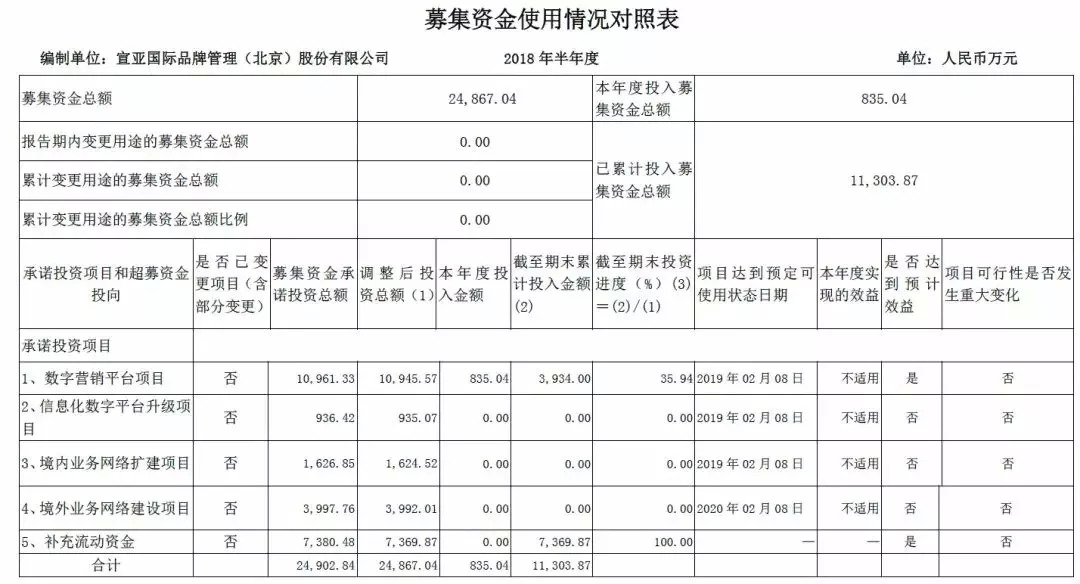 此外,宣亚国际的募投项目推进缓慢,共计募集的2.48亿资金中,有7380万用于补充流动资金,为目前投放最大的项目,另外有3个项目进度为0。