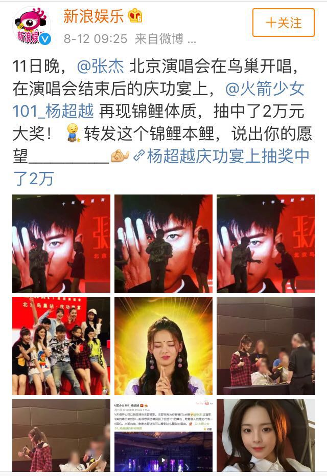 她在张杰的演唱会上抽奖又中了2万元……▼