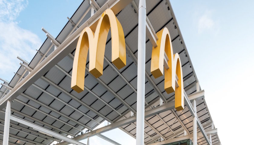巨大的玻璃幕墙、通透的采光、原木色的桌椅,还有室内的绿植……如果不是门口那个硕大的黄色M,你大概会真的以为,这是家新开的苹果门店。