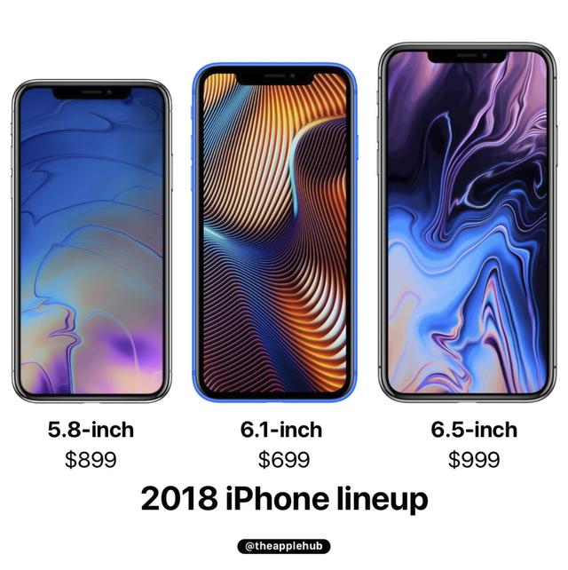 今年会发布3款新iPhone,均为刘海屏,屏幕尺寸分别是5.8吋、6.1吋、6.5吋,其中6.1吋的iPhone将会采用LCD屏幕,其他两款为OLED屏幕。此外,6.1吋的iPhone只有单摄像头,不过会有多彩设计以及中国特供的双卡双待。