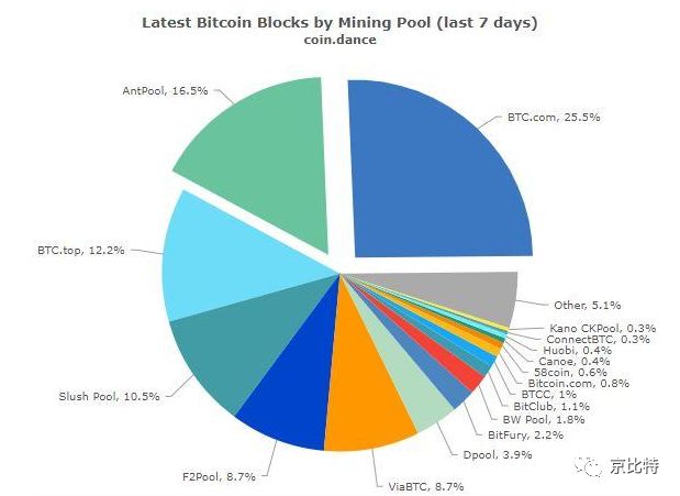 比特大陆旗下有两大矿池:BTC.COM和Antpool。根据最新的数据显示,前者在全球采矿网络中的算力占比已经达到26.10%,后者占到了15.40%。也就是说比特大陆已经坐拥接近全球42%的算力。这是名副其实的垄断力量。
