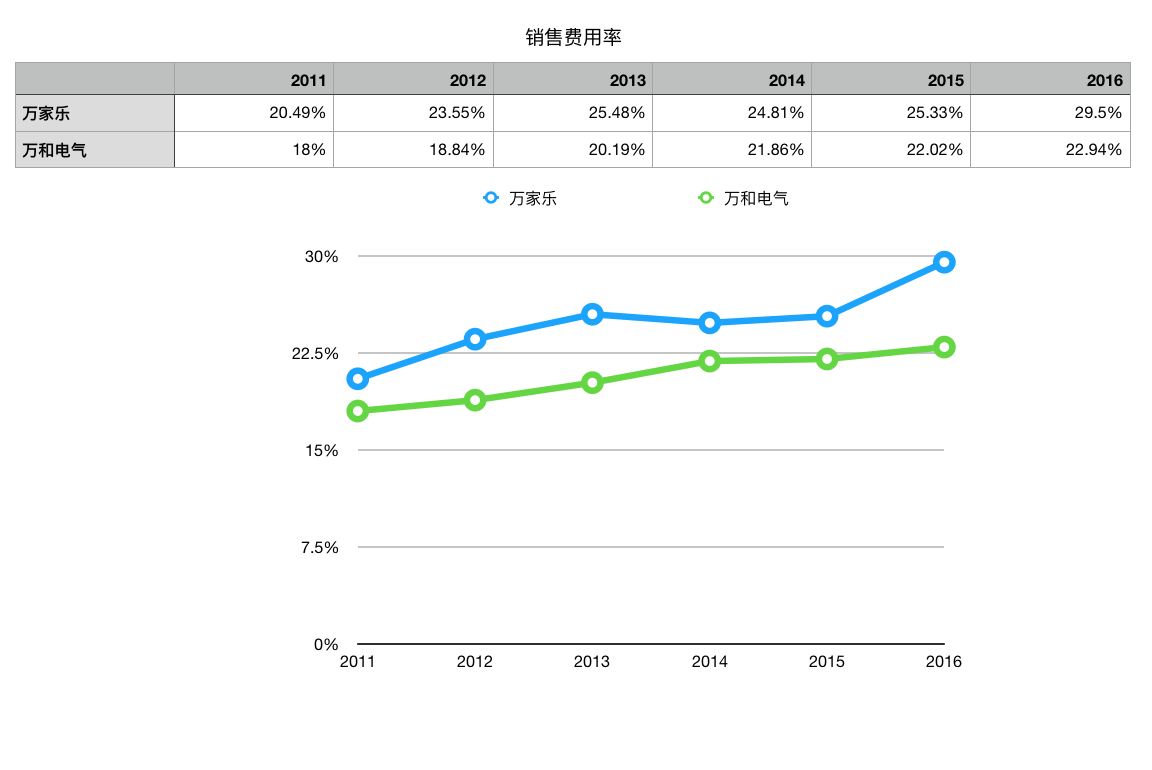 财务数据显示,万家乐营销费用所占总营收的比重超过了万和电气6个百分点。在营收不突出的情况下,营销费用的增长最终损害了万家乐的盈利能力。