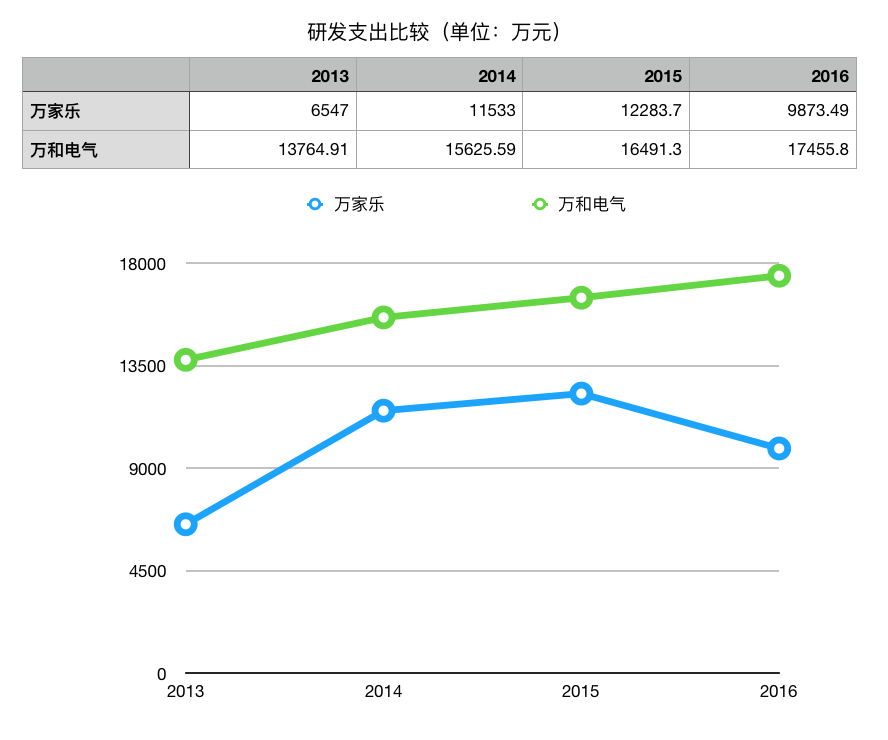 面对华帝股份、万和电气、美的等竞争对手的发展壮大,万家乐缺乏有效的进攻,其投入研发金额也寥寥可数。万家乐研发支出长期徘徊在1亿元左右。相比之下,万和电气的研发投入则高出万家乐一半以上。