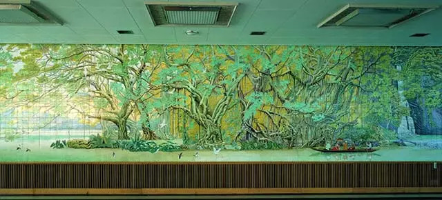 上:祝大年《森林之歌》局部 下:首都机场壁画