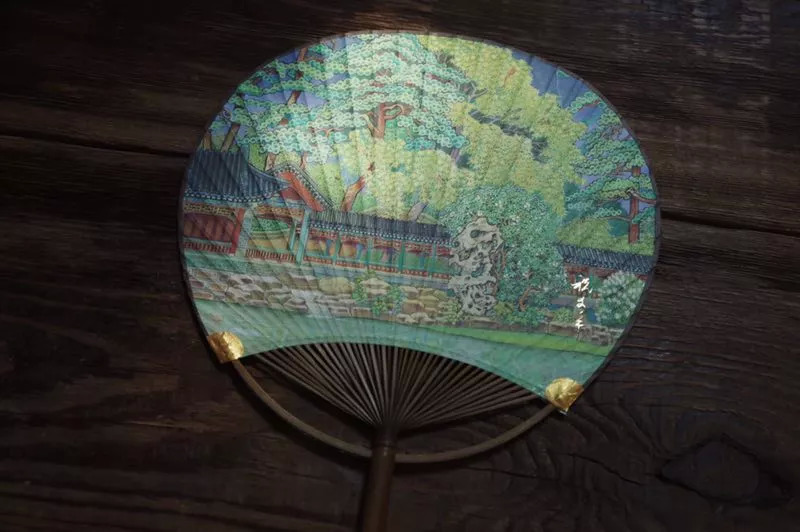灵感均来自故宫藏画,蕴含着中国风古典美的意境,真丝圆形扇面,榉木扇柄,采用印染工艺纯手工制作。