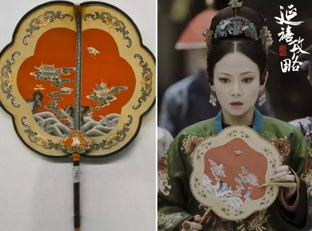 高贵妃所用之扇,则仿制了清朝“红色缂丝乌木雕花柄团扇”。