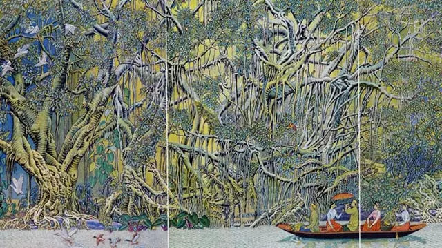祝大年以擅长工笔重彩画闻名,作品图案繁复、色泽丰富,呈现自然祥和之气。