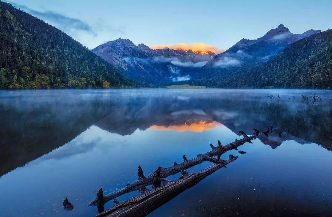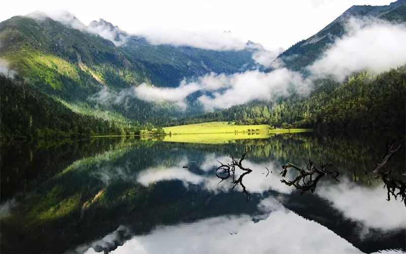 伍须海被当地人喻为“仙女梳妆的明镜”,原始森林和宽阔的草甸环绕湖泊,湖水碧绿透明,环境幽静。
