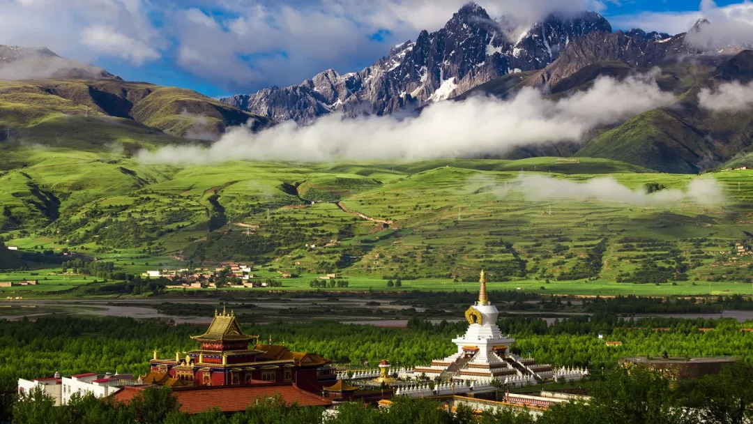 翠色欲流的草甸、鲜花遍野的草场、流水潺潺的小溪、古朴幽深的海子、圣洁高耸的雪峰......每一处都让人心神荡漾。