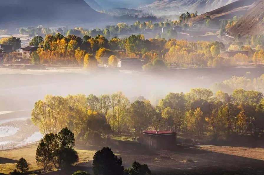 每当清晨或黄昏,炊烟弥漫,河水闪耀着金光,颂经声随风远远传来,犹如天籁,动人心弦。